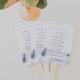Elegant winter wedding program fan features your ceremony details on a watercolor background illustration depicting a snowy mountain scene dotted with pine trees in misty shades of blue. Reverse side lists the members of your wedding party in smoky blue-gray lettering, with easily editable text fields. Coordinates with our Snowbound wedding invitation collection. Use the template fields to add your ceremony and bridal party information, and then click "Customize" to reposition elements if needed.