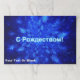 A swarm of blue fractal snowflakes. Cyrillic text reading "S Rozhdestvom" (С Рождеством - A Russian Christmas greeting) appears in glowing blue and white. Customize by adding your own additional text.