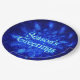 A wintry theme featuring a swarm of blue fractal snowflakes. Text reading "Season's Greetings" appears in glowing blue and white.