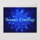 A swarm of blue fractal snowflakes. Text reading "Season's Greetings" appears in glowing blue and white.