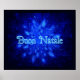 A wintry theme featuring a swarm of blue fractal snowflakes. Text reading "Buon Natale" appears in glowing blue and white.
