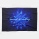 A wintry theme featuring a swarm of blue fractal snowflakes. Text reading "Season's Greetings" appears in glowing blue and white.