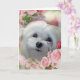 This card consists of a photograph of Snowdrop, a sweet little Maltese Dog surrounded by some beautiful flowers. A very soft and pretty picture.