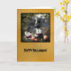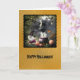 This cute Halloween Card features Snowdrop, a sweet little Maltese Dog wearing a witches hat and coat in front of a haunted house with a ghost and a cauldron of evil broth.