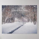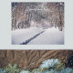 Nature photography. Peaceful winter landscape in soft tones: a bridge over a small stream, trees covered with snow. Perfect addition for Scandinavian or minimalist style interior. You can delete the text "Love winter" or replace it with your own message (click "Personalize this template").
