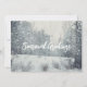 Snowfall in the winter forest holiday card