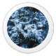 Snowfall in the forest. Snowflakes in the air. Snow covered Christmas tree. Blue and green colors, winter mood. Merry Christmas and Happy New Year to you and yours!