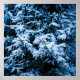 Snowfall in the forest. Snowflakes in the air. Snow covered Christmas tree. Blue and green colors, winter mood. Merry Christmas and Happy New Year to you and yours!