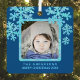 Featuring 2 of your photos, one on each side, these personalized photo Christmas ornaments are a classic keepsake gift for family and friends and this elegant faux blue opal snowflake design in deep blue will add a designer touch your holiday décor while highlighting two of your treasured photos. So easy to personalize, these custom photo ornaments have simple photo and text templates front and back that let you add your photos and optional custom text in light pastel blue on the rich blue background. If you like your ornaments without text, just clear and delete the placeholder text on each side to remove it. Upload your treasured photos, one on the front and one on the back and watch them become part of this custom design, bordered in a faux blue opal frame and accented with five chunky faux blue opal snowflakes drifting across the top of these custom aluminum holiday ornaments. The photo templates present your pictures with slightly rounded corners to match the actual ornament for an added detail. Printed on both sides, just for you, these blue opal snowflake and rich blue photo ornaments are beautiful keepsakes of Christmas with your photos of family, babies, pets and friends.