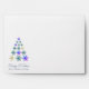 Festive and simple personalized Christmas holiday envelope. Beautiful colorful Christmas tree made of big and small snowflakes, Happy holidays text and personal note from you in trendy script handwriting. Send your holiday mail in this simple but stylish envelope to your friends and family.