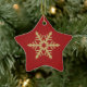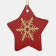 A snowflake vector digital design with a gold snowflake on a dark red background.