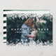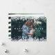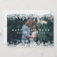 Elegant and modern holiday card design features your favorite horizontal or landscape oriented photo framed at the top and bottom by a border of white snowflake illustrations. "Happy New Year" appears in modern lettering as a white text overlay in the center, with your name(s) and the year beneath. To reposition text elements, use the Customize or Personalize feature.
