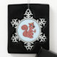 Snowflake Ornament with an illustration of a cute red squirrel holding a peanuts, a cute animal design for kids by Radka Kavalcova