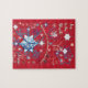 Snowflake greetings in red, blue and whites. May you have cozy and warm holiday time! Cheers!