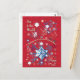 Snowflake greetings in red, blue and whites. May you have cozy and warm holiday time! Cheers!