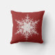 A Bright white snowflake accents this cranberry red pillow, making it perfect as a Christmas gift, or for accenting your home during the holiday season.