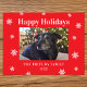his high-quality, fully customizable photo holiday postcard is perfect for retailers seeking family-friendly seasonal products. It features a classic photo template (easily replaced with the customer's photo) set within a festive deep red border and adorned with delicate white snowflakes. The design combines traditional Christmas elements with the high-demand category of personalized photo greeting cards. Ideal for the Christmas, Winter Holiday, and Season's Greetings market. Appeals to families, individuals, and customers looking for unique, memorable, and stylish holiday greetings.