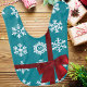 Snowflake Monogram Teal Red Bow Christmas Baby Bib
