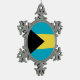 Crafted with meticulous attention to detail and premium materials, this ornament combines durability with beauty, making it a perfect addition to your seasonal embellishments. The intricate design proudly showcases the vibrant colors of the Bahamian flag – aquamarine, gold, and black – delicately arranged within a snowflake silhouette.
