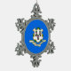 Crafted with precision and pride, this ornament celebrates Connecticut's rich history and cultural heritage. The design elegantly incorporates the elements of the Connecticut flag, featuring a blue field with a white shield in the center. The shield depicts three grapevines and a banner with the Latin motto "Qui Transtulit Sustinet" ("He who transplanted still sustains"), symbolizing the state's resilience and agricultural roots.