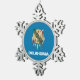 Crafted with precision and cultural pride, this ornament honors Oklahoma's rich heritage and natural beauty. The design elegantly incorporates the elements of the Oklahoma flag, featuring the traditional Osage warrior's shield with its peace pipe and olive branch, symbolizing unity and peace.