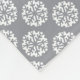 Gray and white fleece blanket with a wintry pattern of snowflakes.