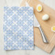 Kitchen towel for the winter season with a pattern of light blue snowflakes on a white background.