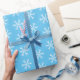 Original geometric white snowflake pattern on a bright light blue background is perfect for a stylish Christmas.