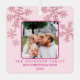 Personalize this double sided 2 photo Christmas ornament with your text and photos integrated into the light pink and pink faux glitter snowflake design. Both sides are identical in layout, with five faux sparkle pink snowflakes surrounding a square photo template with rounded corners and framed in a dark berry pink. Up to 3 lines of text at the bottom in a simple dark pink font lets you label each photo or simply express a holiday message and the year on each square metal ornament. So upload two of your photos, one on each side, or use the same picture on each side, as you wish. Designed to be customized as you like, this light pink and snowflake photo Christmas ornament is a great keepsake for your own holiday tree or as a gift for family and friends.