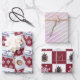 Snowflake Pink Opal Pinstripes 3 Photo Christmas Wrapping Paper Sheets