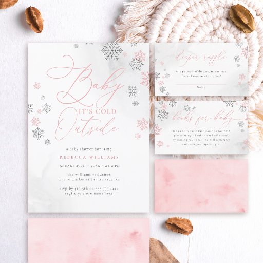Snowflake Pink & Silver Glitter Winter Baby Shower Invitation