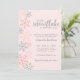 A Little Snowflake Is On The Way Baby Shower Invitation. Celebrate the upcoming arrival of a winter baby girl with this sweet and elegant snowflake-themed baby shower invitation. The design features soft watercolor snowflakes in delicate shades of pink and gray, running from top to bottom along the left side. The right side of the card holds all of the event text in a clean, modern layout.