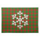 This cloth placemat is shown with a green and red plaid snowflake print.