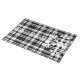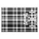 This cloth placemat is shown with a black and white plaid snowflake print.