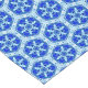 Table Runner in a geometric, honeycomb quilt pattern of snowflakes in deep cobalt blue and white, accented with turquoise