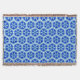Throw in a geometric, honeycomb quilt pattern of snowflakes in deep cobalt blue and white, accented with turquoise