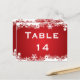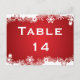 Snowflake red white winter wedding table number
