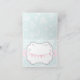 Silver glitter-effect trim and snowflakes with blue and white snowflake background and pink polka-dot band and pink, blue bunting banner thank you note card.