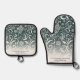 Snowflake Swirls On Dark Green Custom Christmas Oven Mitt & Pot Holder Set