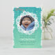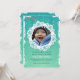 A unique photo card to celebrate a winter birthday. The grunge, teal, snowy background features a snowflake-tag photo-window for your favorite photo. Perfect for any age or gender.