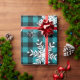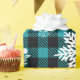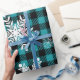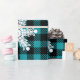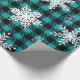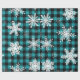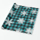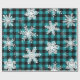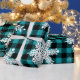 Snowflakes on Teal Black Plaid Wrapping Paper
