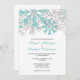 Snowflake Teal Blue Silver Winter Wedding Invites