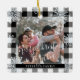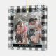 Rustic farmhouse elegant winter black and white plaid gingham buffalo check family keepsake pattern tree ornament template with sparkling snowflakes frame. +++++++++++++++++++++ Easy to personalize with your 2 photos, text script, family name and year!