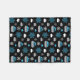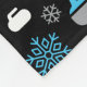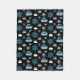 Fleece blanket featuring a snowflake and curling rock pattern in blue, white and grey on black background. Perfect for curlers and curling fans.