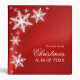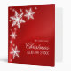 Personalized family Christmas album with illustration of white snowflakes on red.