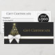 Luxurious and rich holiday design featuring a splendid Christmas tree silhouette with golden snowflakes. Decorated with a white gold gift bow on a lush anthracite black dark gray background. This festive gift certificate is perfect for your small business or to gift friends and family.
