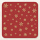 A snowflake vector digital design with gold snowflakes on a dark red background.