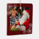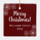 Square ornament with photo with stylish snowflakes. Features Merry Christmas in script and family name and year on the back. Lovely keepsake to hang on your tree or to send to family and friends at the holidays.