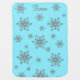 Snowflakes in Silver White and Blue personalized baby blanket. Perfect wrap for the Christmas or winter blessing. Substitute your baby's name, change the color of the background or even swap out the images to make this baby blanket uniquely yours.