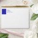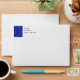 Customizable Christmas envelope with a blue interior with snowflakes. Fill out your return address information to make your Christmas mailing list easier.